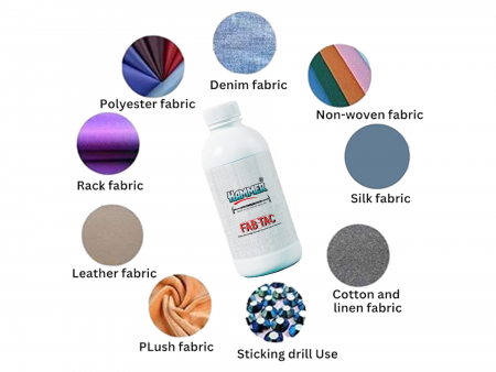 HAMMER FAB-TAC is a high strength solvent free water based fabric adhesive specially formulated for bonding fabric to fabric and other decorative accessories. It exhibits excellent bonding strength and creates strong bonds in laminating fabrics together. HAMMER FAB-TAC has excellent durability and wash ability of fabric. It is entirely eco-friendly and non-toxic, yet it’s able to form a strong bond to ensure your designs remain as you set them.